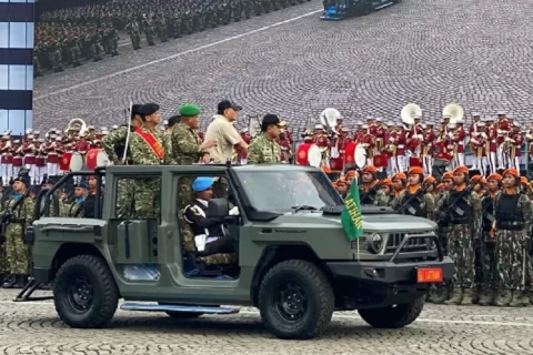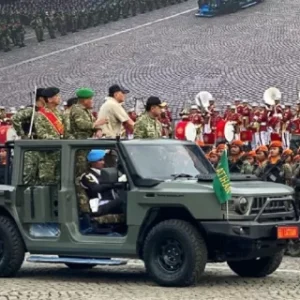 SERIBUKOTA– Panglima TNI Jenderal TNI Agus Subiyanto meminta para prajurit memberikan tatapan mata yang tajam kepada Presiden Prabowo Subianto yang akan memeriksa pasukan dari atas kendaraan Maung pada perayaan HUT TNI ke 80, di Silang Monas, Jakarta, Minggu,(5/10/2025).
